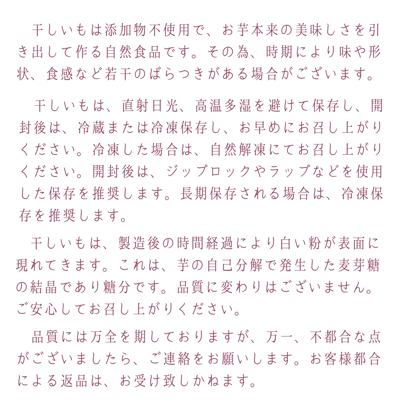 ・原料はお芋だけの砂糖不使用の無添加食品